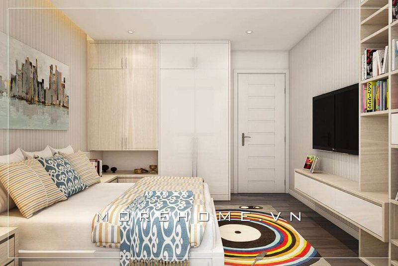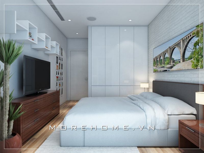 Thiết kế nội thất phòng ngủ chung cư hiện đại, thanh thoát mà không kém phần tiện nghi