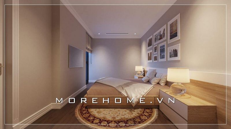 Morehome gợi ý cho bạn mẫu phòng ngủ Master tại biệt thự hiện đại, chiếc giường ngủ bọc nỉ cao cấp kết hợp ghế đuôi giường tạo sự thuận tiện nhất cho gia chủ